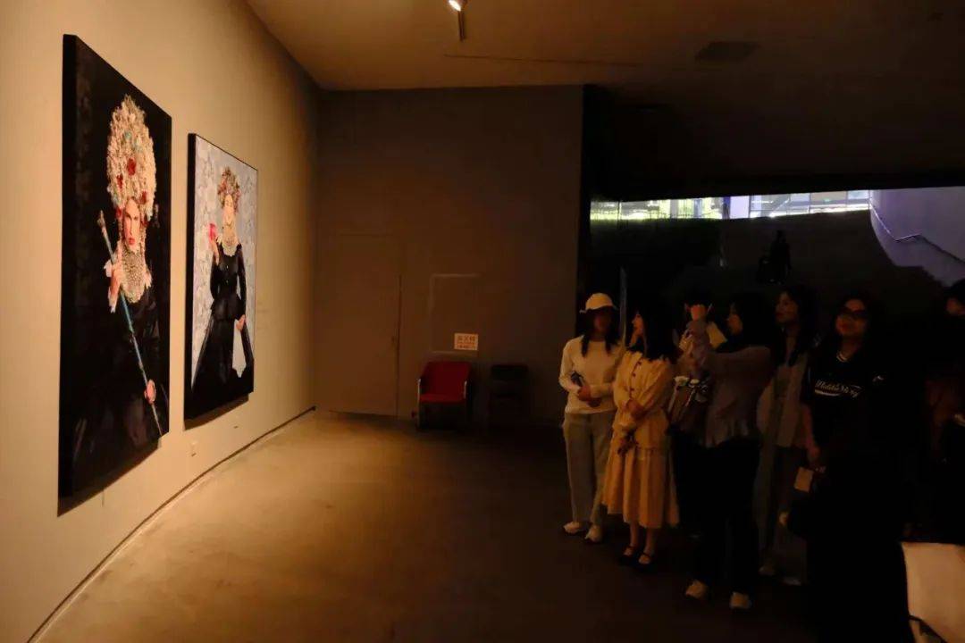 上午11时,参观校美术馆的环节正式开始。同学们一同走进美术馆,欣赏《永恒之灵》《钝角》《施展:我们交换黑暗的词》《未完成的对话》等展览。在一幅幅艺术作品前,大家驻足欣赏、热烈讨论,感受着艺术的魅力与创作者的独特表达。参观结束后,大家在美术馆门口合影,为这次艺术之旅留下珍贵的回忆。